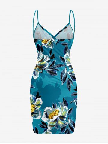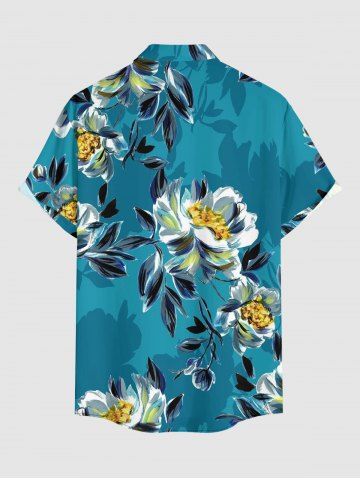 Flower Leaf Branch Print Plus Size Matching Hawaii Beach Outfit For Couples - Blue