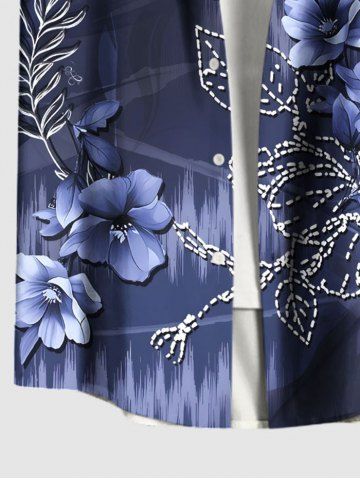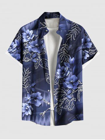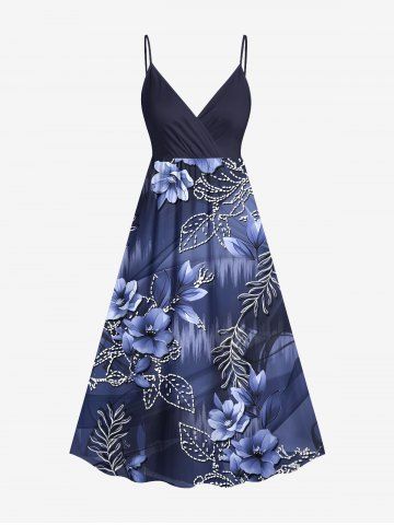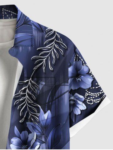 Flower Leaf Branch Waterwave Print Plus Size Matching Hawaii Beach Outfit For Couples - Blue