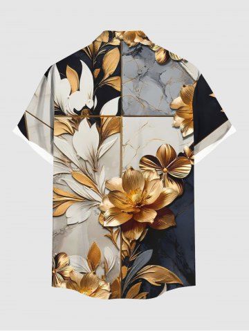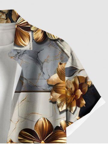 Flower Leaf Colorblock Print Plus Size Matching Hawaii Beach Outfit For Couples - Gray