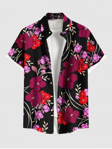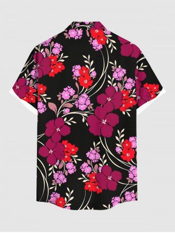 Flower Leaf Curve Branch Print Plus Size Matching Hawaii Beach Outfit For Couples - Red