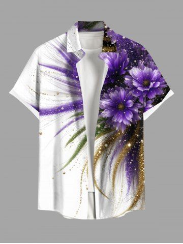Flower Leaf Glitter Sequins Print Plus Size Matching Hawaii Beach Outfit For Couples - White