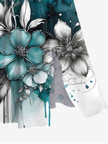 Matching Hawaiian Outfits > Flower Leaf Ombre Colorblock Paint Drop Print Plus Size Matching Hawaii Beach Outfit For Couples