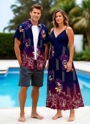 Matching Hawaiian Outfits > Flower Leaf Ombre Print Plus Size Matching Hawaii Beach Outfit For Couples