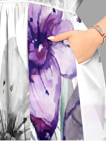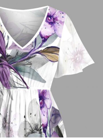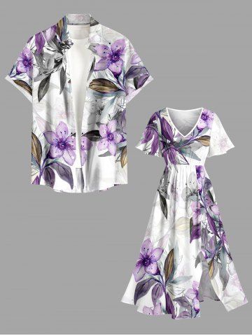 Flower Leaf Ombre Print Plus Size Matching Hawaii Beach Outfit For Couples - Purple