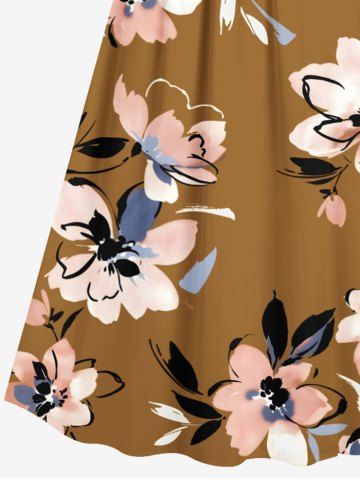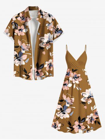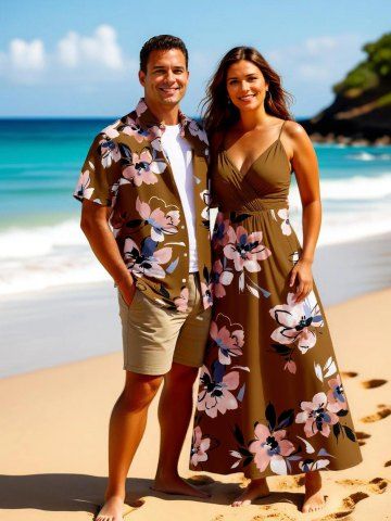 Matching Hawaiian Outfits > Flower Leaf Print Plus Size Matching Hawaii Beach Outfit For Couples