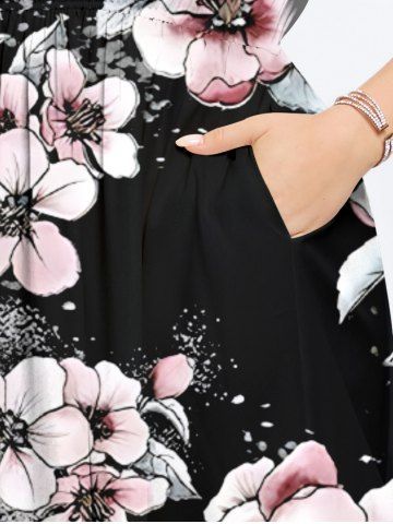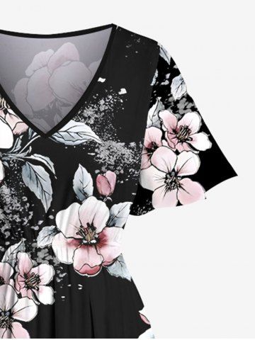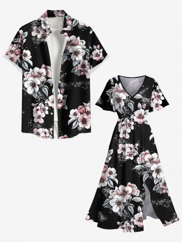 Flower Leaf Print Plus Size Matching Hawaii Beach Outfit For Couples - Black