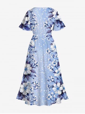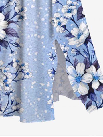 Flower Leaf Print Plus Size Matching Hawaii Beach Outfit For Couples - Blue