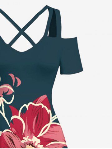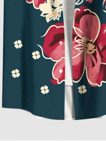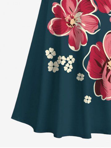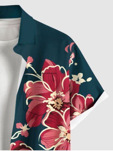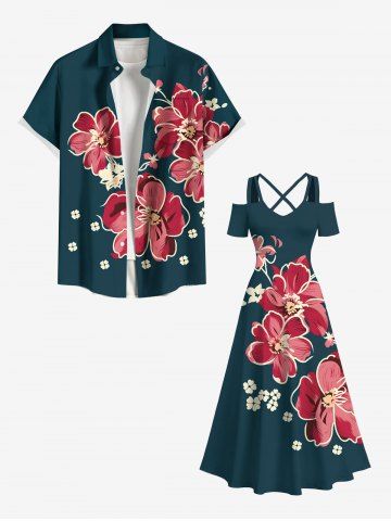 Flower Leaf Print Plus Size Matching Hawaii Beach Outfit For Couples - Deep Green