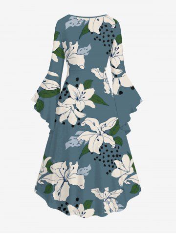Flower Leaf Spotted Print Plus Size Matching Hawaii Beach Outfit For Couples - Green