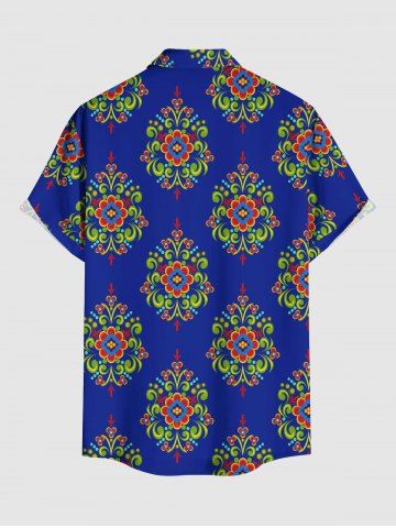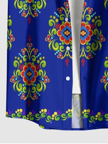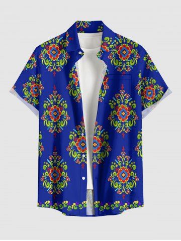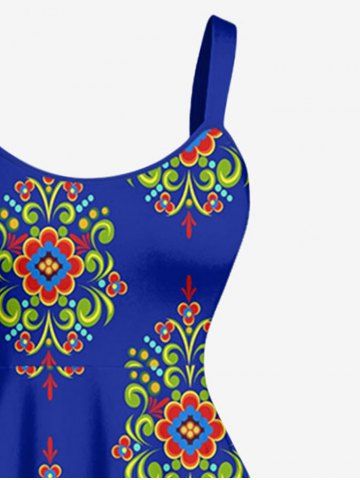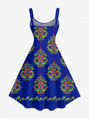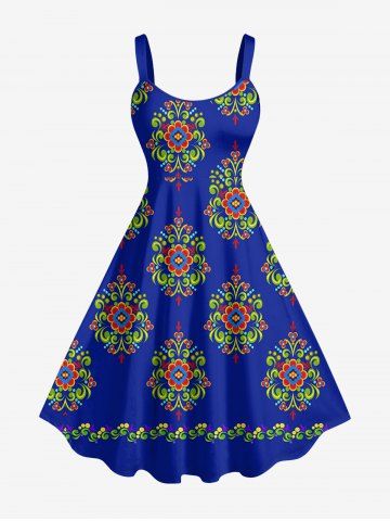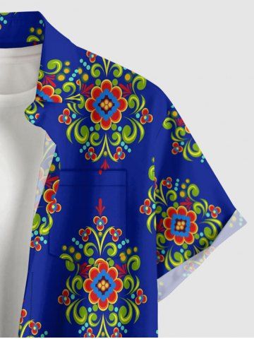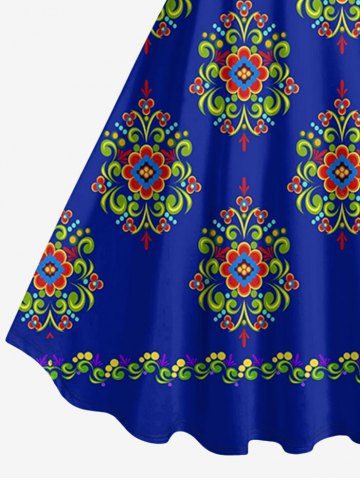 Flower Pattern Print Plus Size Matching Hawaii Beach Outfit For Couples - Navy Blue