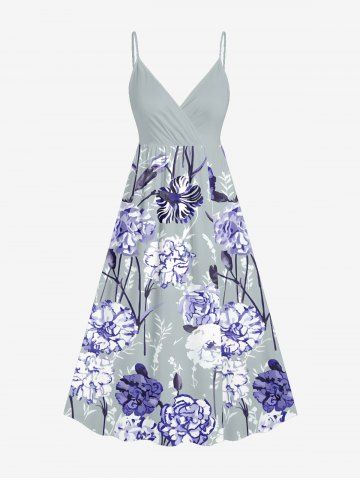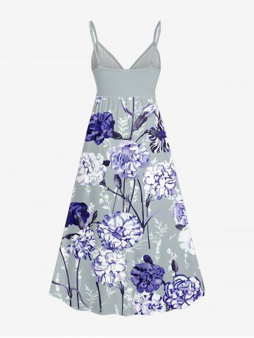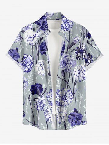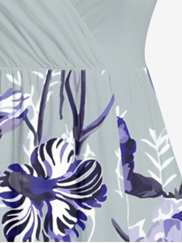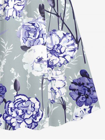 Flower Plant Print Plus Size Matching Hawaii Beach Outfit For Couples - Navy Blue