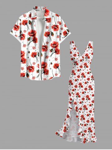Flower Print Matching Hawaii Beach Outfit For Couples - Red