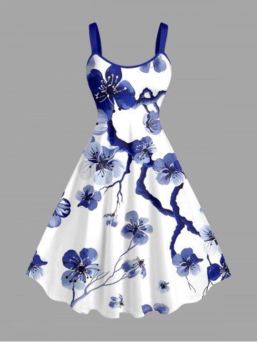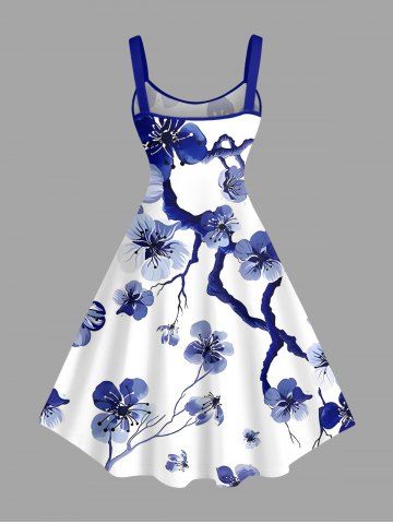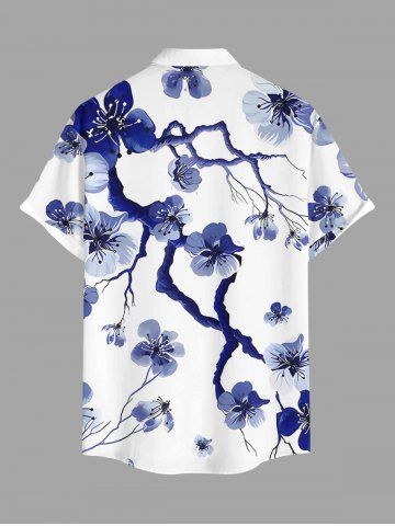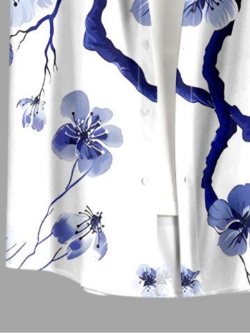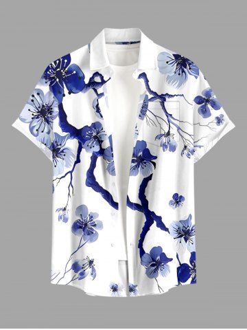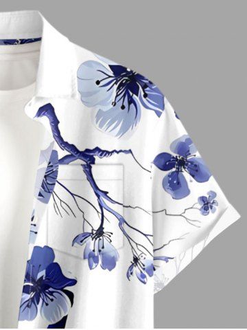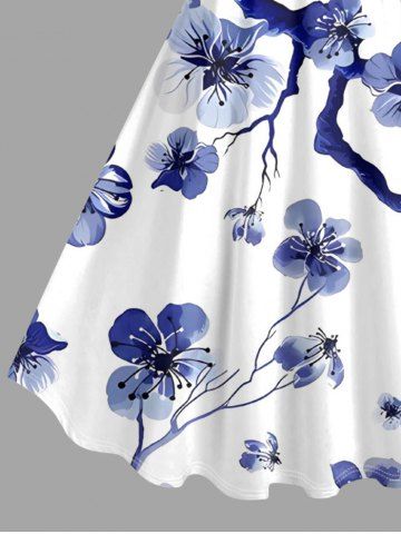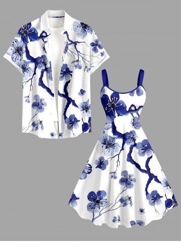 Flower Tree Branch Print Plus Size Matching Hawaii Beach Outfit For Couples - Deep Blue