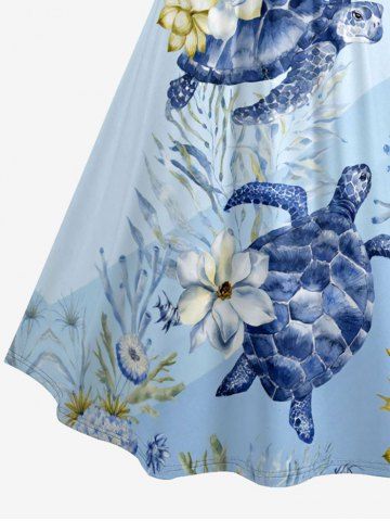 Flower Turtle Coral Print Plus Size Matching Hawaii Sea Creatures Beach Outfit For Couples - Light Blue