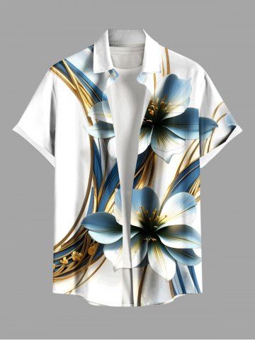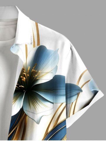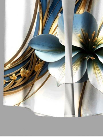 Flowers Geometric Pattern Metallic Print Plus Size Matching Hawaii Beach Outfit For Couples - White