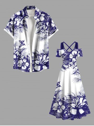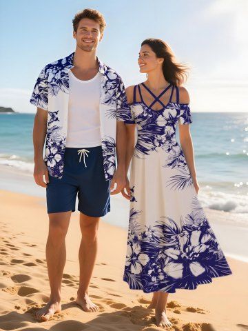 Matching Hawaiian Outfits > Flowers Leaf Butterfly Print Plus Size Matching Hawaii Beach Outfit For Couples