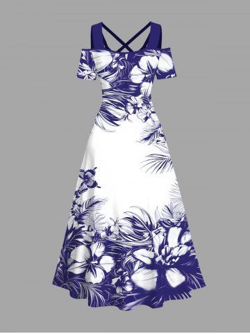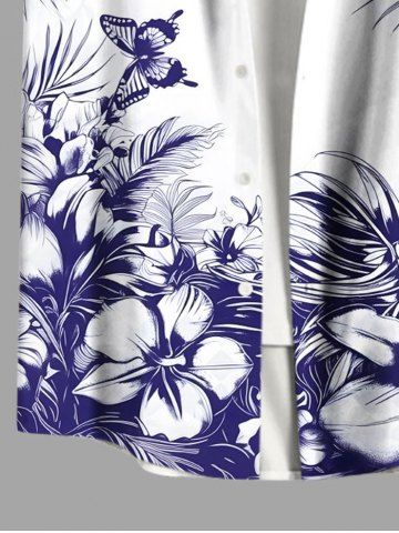 Flowers Leaf Butterfly Print Plus Size Matching Hawaii Beach Outfit For Couples