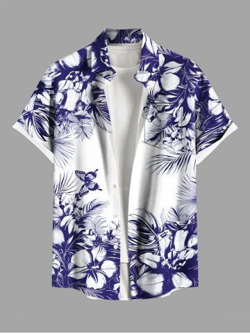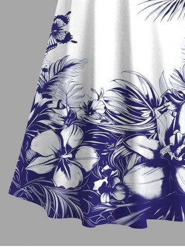 Flowers Leaf Butterfly Print Plus Size Matching Hawaii Beach Outfit For Couples - White