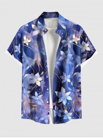 Flowers Leaf Galaxy Star Print Plus Size Matching Hawaii Beach Outfit For Couples - Blue