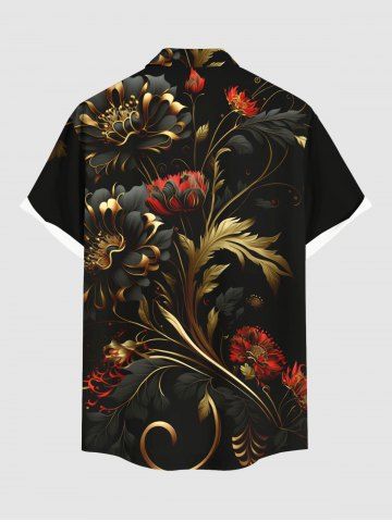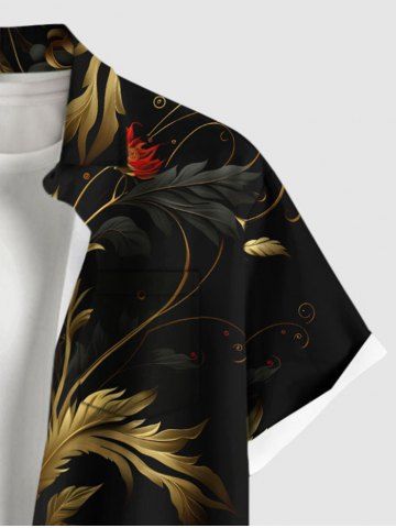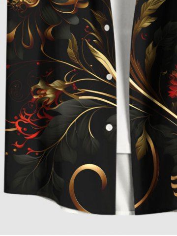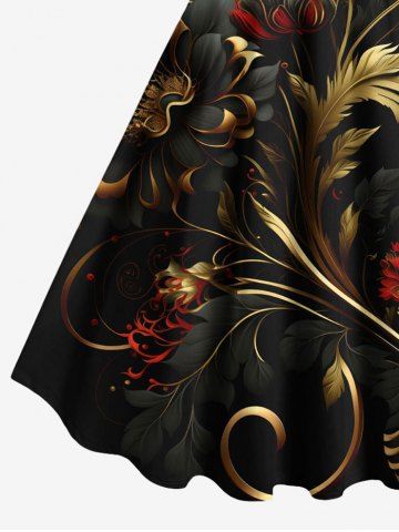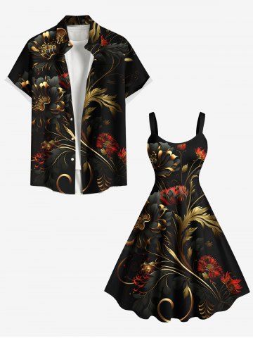 Flowers Leaf Metallic Print Plus Size Matching Hawaii Beach Outfit For Couples - Black