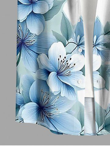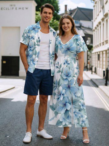Flowers Leaf Ombre Print Plus Size Matching Hawaii Beach Outfit For Couples - Light Blue