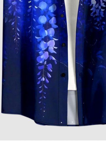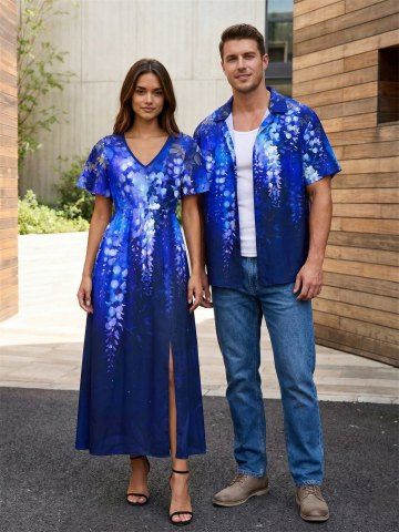 Flowers Leaf Ombre Print Plus Size Matching Hawaii Beach Outfit For Couples - Blue