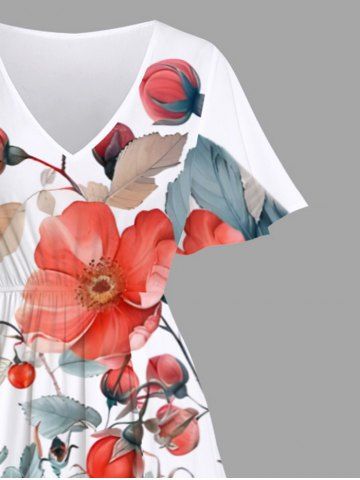 Flowers Leaf Print Plus Size Matching Hawaii Beach Outfit For Couples - White