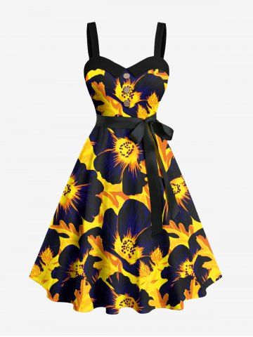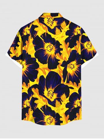 Flowers Leaf Print Plus Size Matching Hawaii Beach Outfit For Couples - Yellow