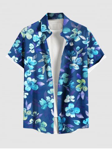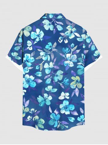 Flowers Leaf Print Plus Size Matching Hawaii Beach Outfit For Couples - Blue
