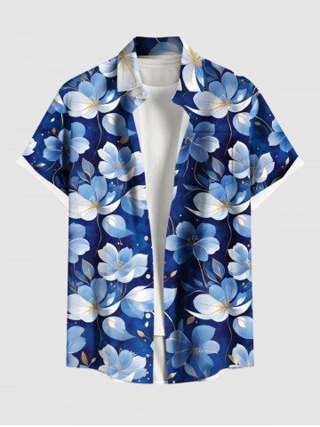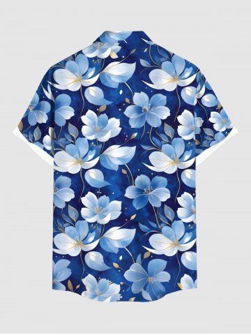 Flowers Leaf Print Plus Size Matching Hawaii Beach Outfit For Couples - Blue