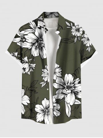 Flowers Leaf Print Plus Size Matching Hawaii Beach Outfit For Couples - Deep Green