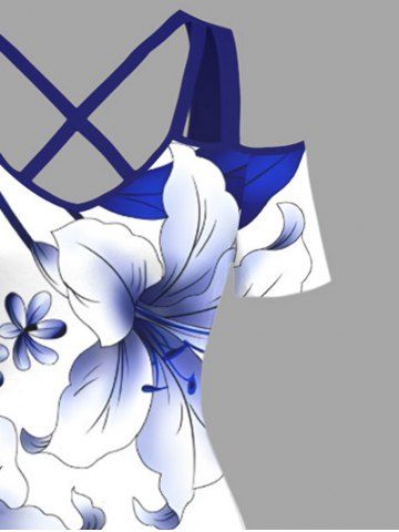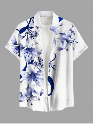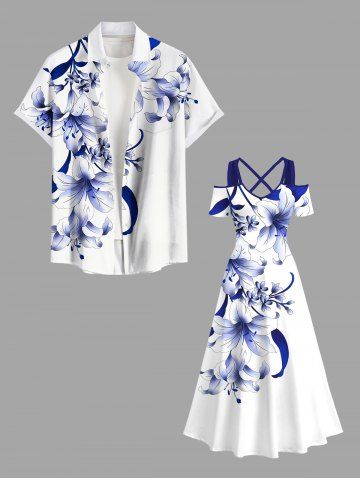 Flowers Leaf Print Plus Size Matching Hawaii Beach Outfit For Couples - White