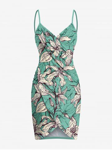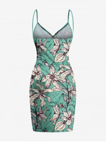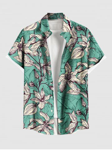 Flowers Leaf Print Plus Size Matching Hawaii Beach Outfit For Couples - Green
