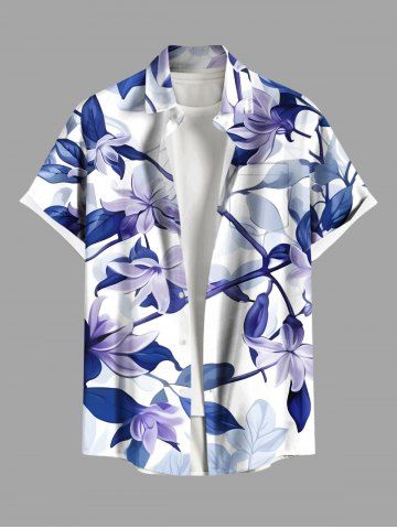 Flowers Leaf Print Plus Size Matching Hawaii Beach Outfit For Couples - Blue