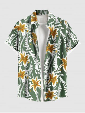 Flowers Leaf Print Plus Size Matching Hawaii Beach Outfit For Couples - Green
