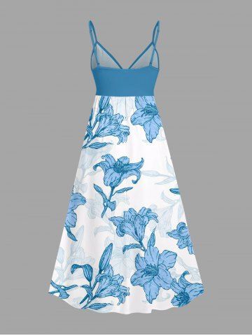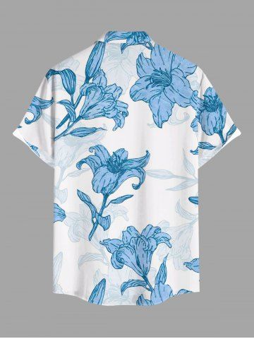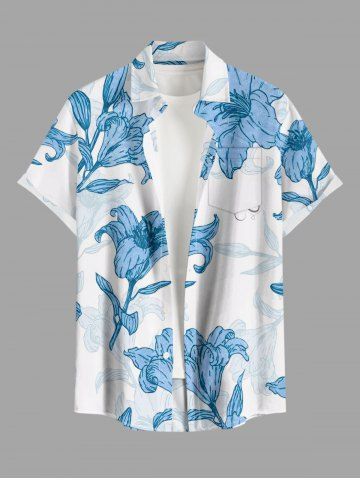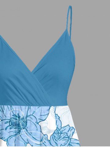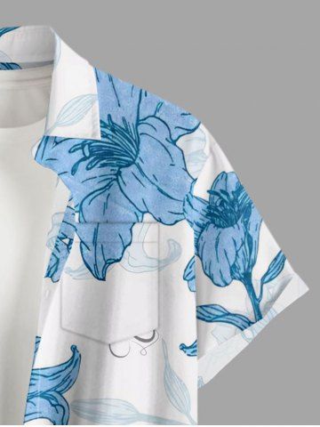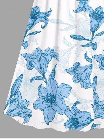 Flowers Leaf Print Plus Size Matching Hawaii Beach Outfit For Couples - Sky Blue
