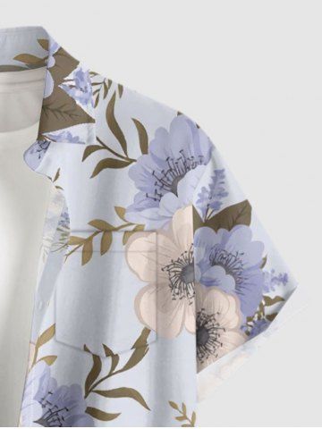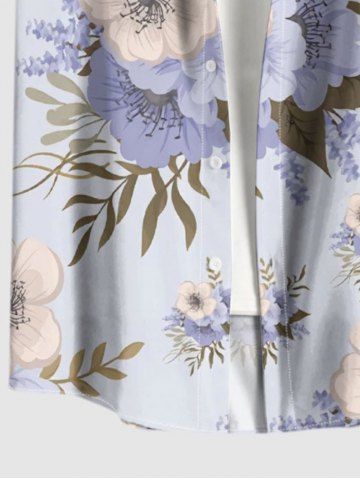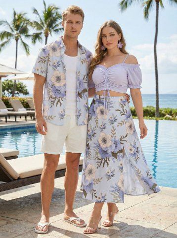 Flowers Leaf Print Plus Size Matching Hawaii Beach Outfit For Couples - Light Purple