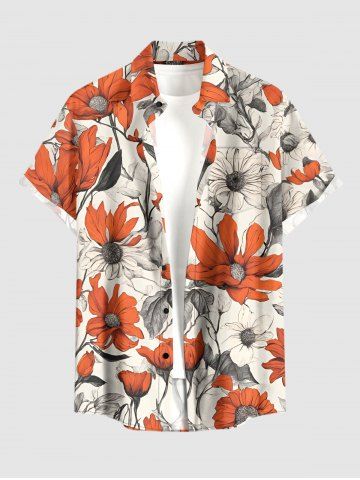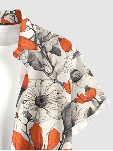 Flowers Leaf Print Plus Size Matching Hawaii Beach Outfit For Couples - Light Coffee
