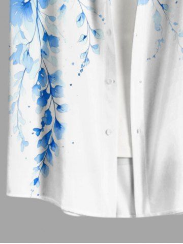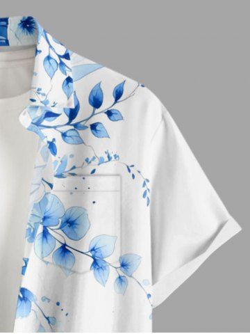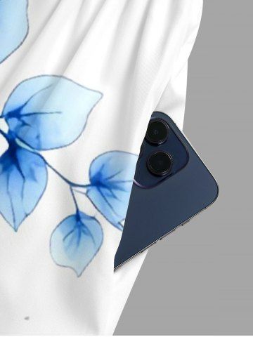 Flowers Leaf Print Plus Size Matching Hawaii Beach Outfit For Couples - Blue