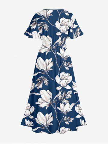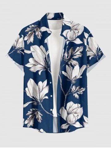 Flowers Leaf Print Plus Size Matching Hawaii Beach Outfit For Couples - Cadetblue