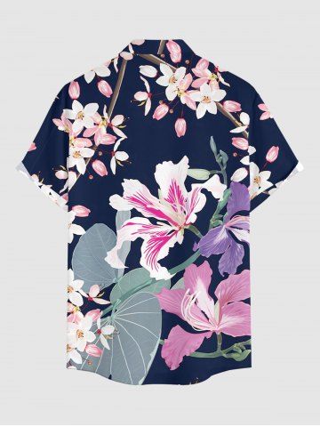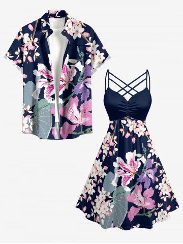 Flowers Leaf Print Plus Size Matching Hawaii Beach Outfit For Couples - Deep Blue