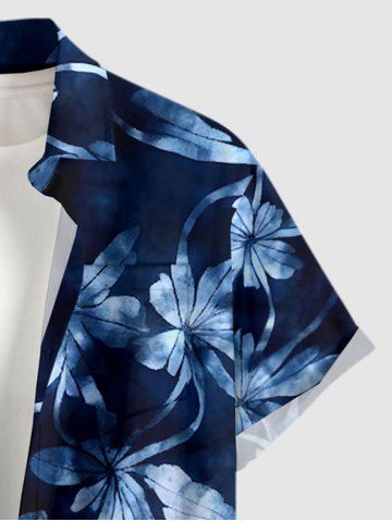 Flowers Leaf Tie Dye Print Plus Size Matching Hawaii Beach Outfit For Couples - Cadetblue