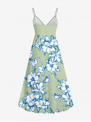 Flowers Leaf Tropical Print Plus Size Matching Hawaii Beach Outfit For Couples - Green