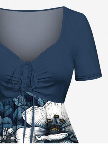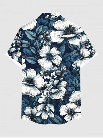 Flowers Leaf Tropical Print Plus Size Matching Hawaii Beach Outfit For Couples - Deep Blue