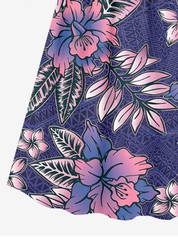 Flowers Leaf Tropical Print Plus Size Matching Hawaii Beach Outfit For Couples - Concord