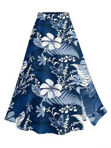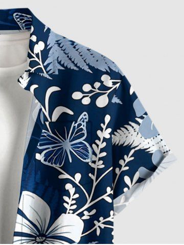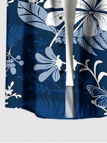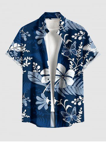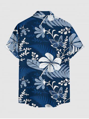Flowers Leaf Tropical Print Plus Size Matching Hawaii Beach Outfit For Couples - Deep Blue