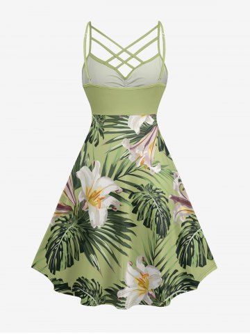 Flowers Leaf Tropical Print Plus Size Matching Hawaii Beach Outfit For Couples - Light Green