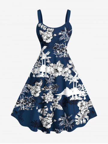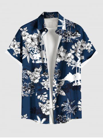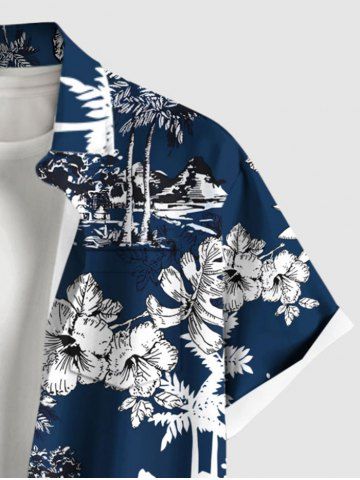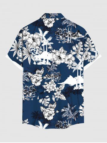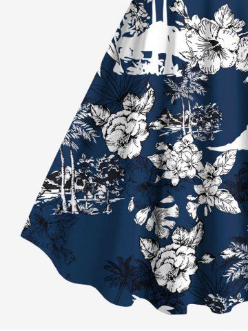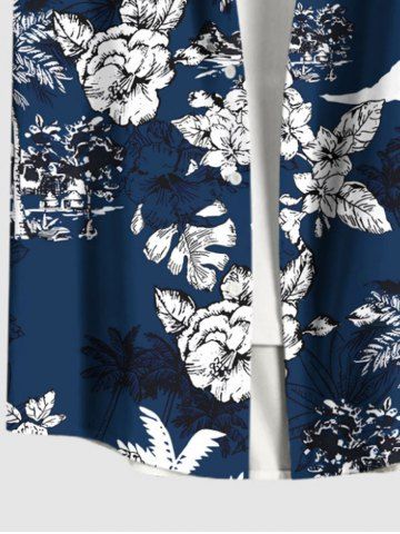 Flowers Tropical Leaf Coconut Tree Print Plus Size Matching Hawaii Beach Outfit For Couples - Navy Blue