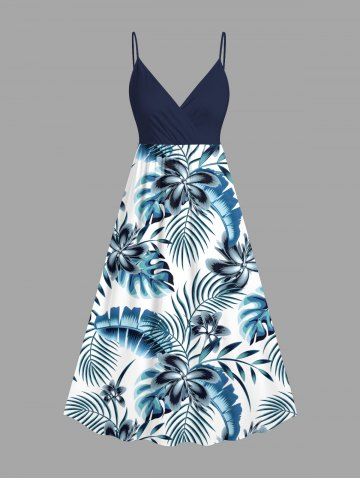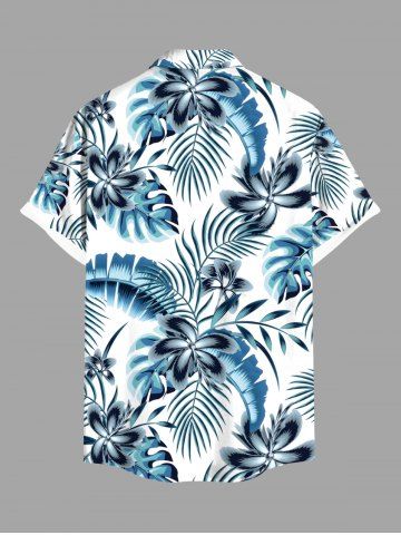 Flowers Tropical Leaf Print Plus Size Matching Hawaii Beach Outfit For Couples - Blue