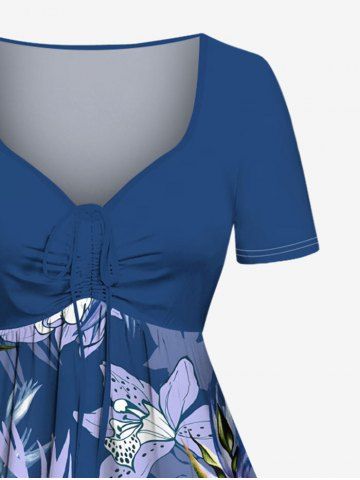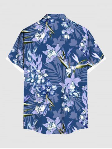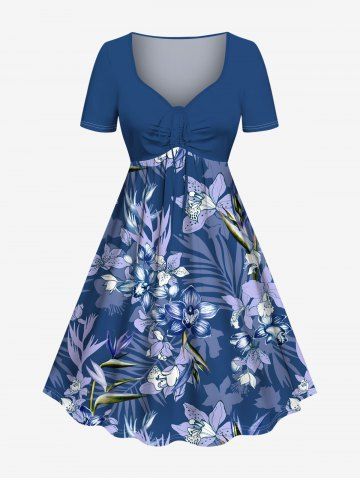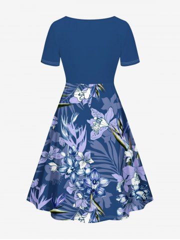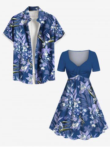Flowers Tropical Leaf Print Plus Size Matching Hawaii Beach Outfit For Couples - Deep Blue